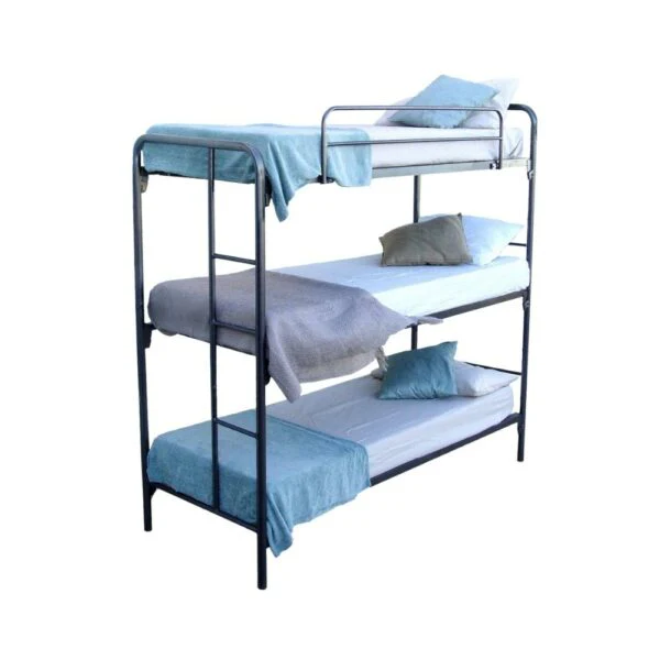The Ava Triple Bunk offers a practical solution for accommodating multiple sleepers in limited spaces. Crafted from sturdy steel, this bunk bed is designed for durability and long-term use, making it ideal for hostels, dormitories, or large families.